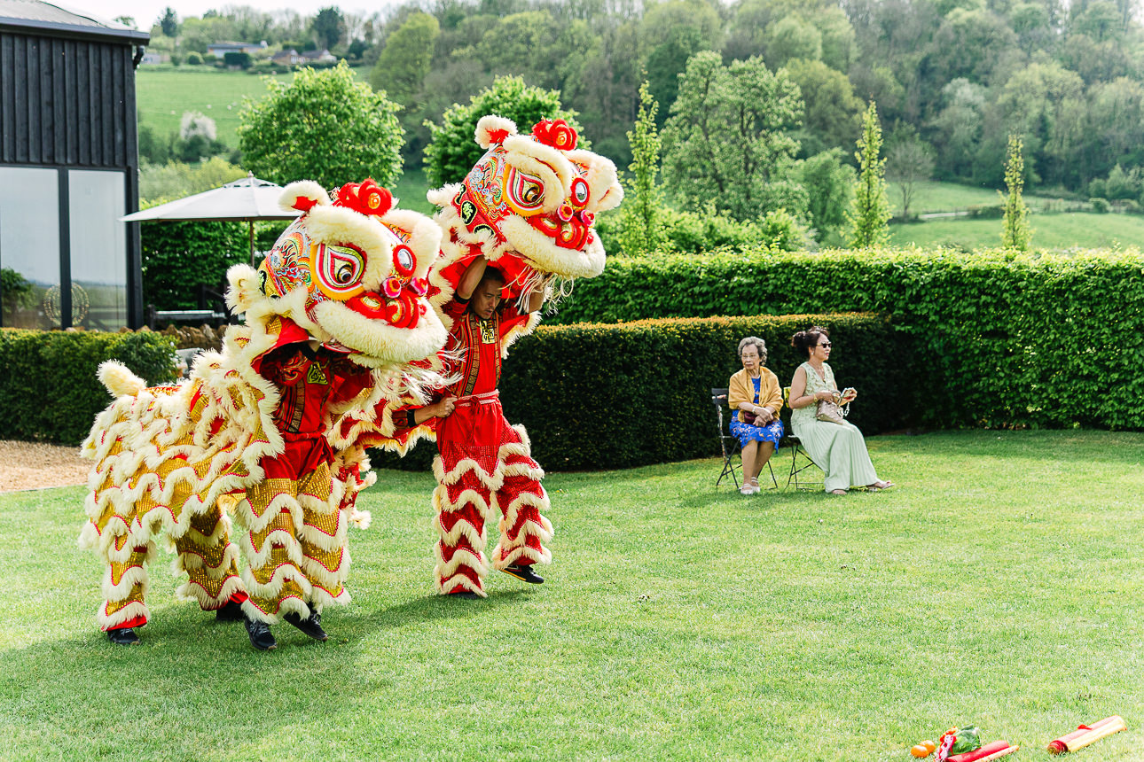 The lion dance brought a completely different energy. Guests seated, waiting, and then the sudden shift as the lions entered, filling the space with movement, sound, and colour. It was one of those moments that pulls everyone in at once, something shared and felt across the whole room.