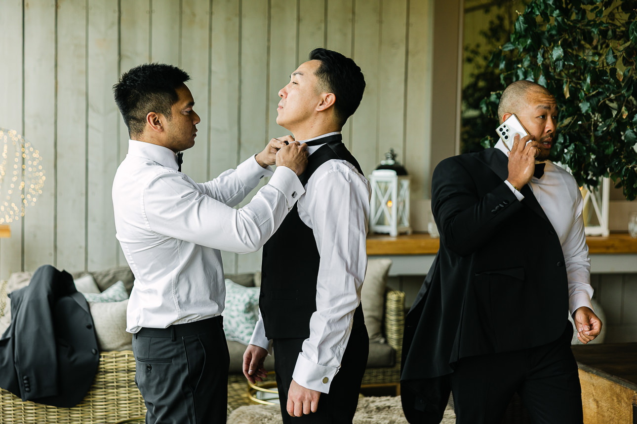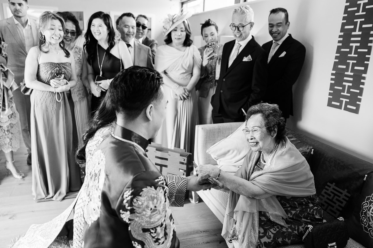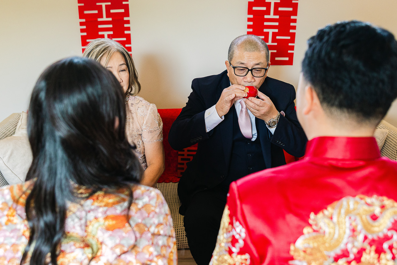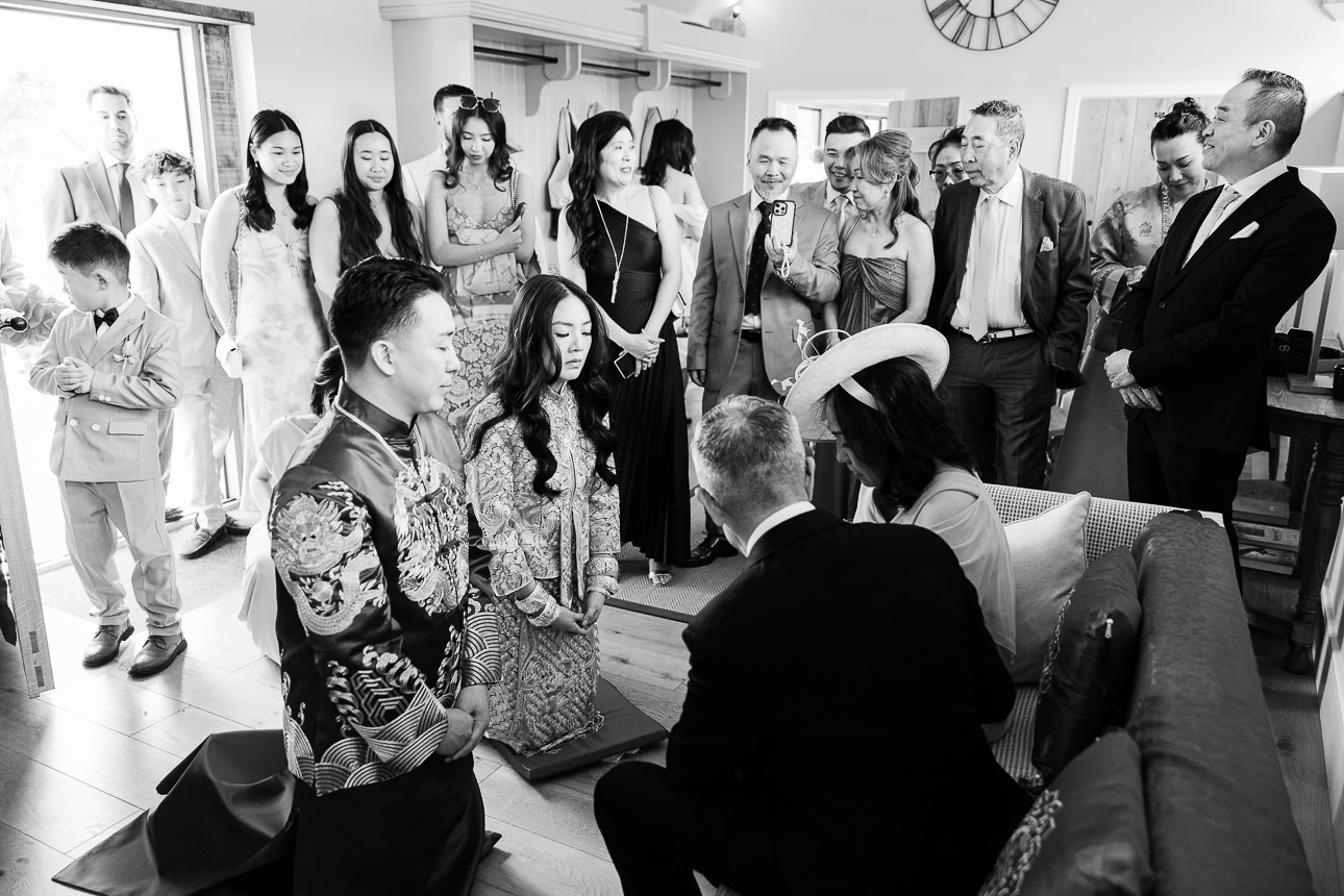 When we arrived, it felt less like a structured wedding day and more like stepping into something deeply personal. The morning began with Letty getting ready for the tea ceremony, a quiet moment with her mum helping her into her jacket, simple, meaningful, and full of intention.